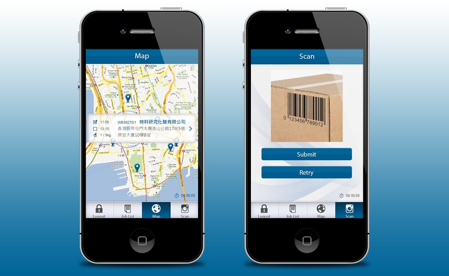 這是一間送貨公司給內部送貨員使用的app,可準備看到送貨員到達那個位置及貨物狀態。